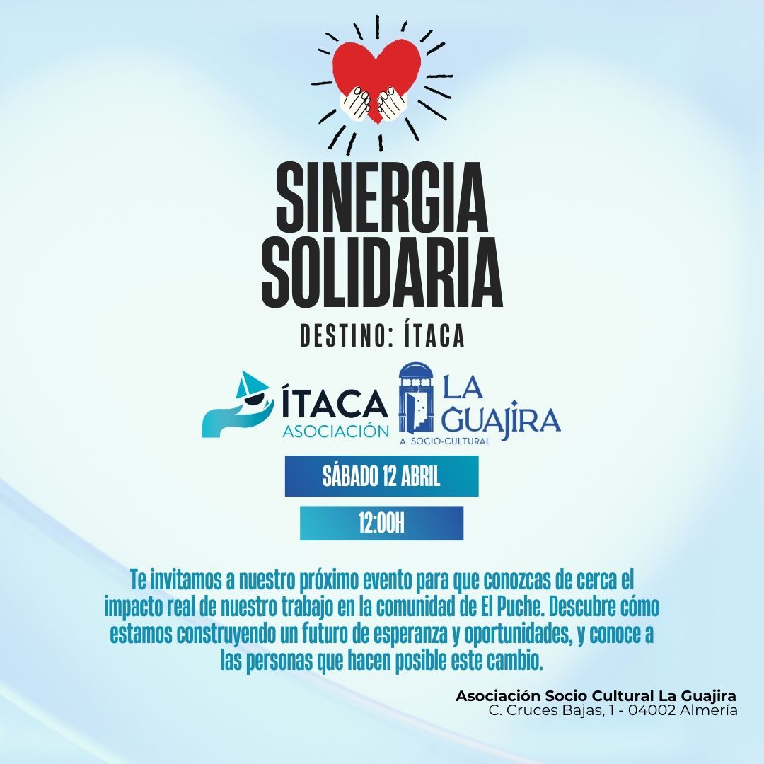 El pasado 12 de abril, la Asociación Ítaca celebró una tarde mágica de solidaridad y cultura en La Guajira, con una gran acogida por parte del público que se acercó a apoyar su labor en el barrio de El Puche. El evento contó con las emotivas actuaciones del artista flamenco "El Torbellino", proyecciones audiovisuales sobre el barrio, la frescura teatral del grupo juvenil "Impulsa2", y el vibrante freestyle rap de Mestizo. Desde la Asociación Ítaca agradecemos profundamente la asistencia, el apoyo y las contribuciones, que impulsan nuestros proyectos para construir un futuro mejor en El Puche, así como la cálida acogida de la Asociación Socio-Cultural La Guajira.